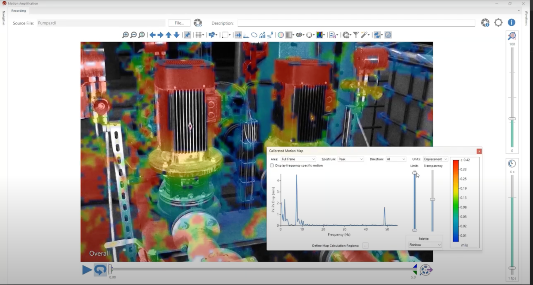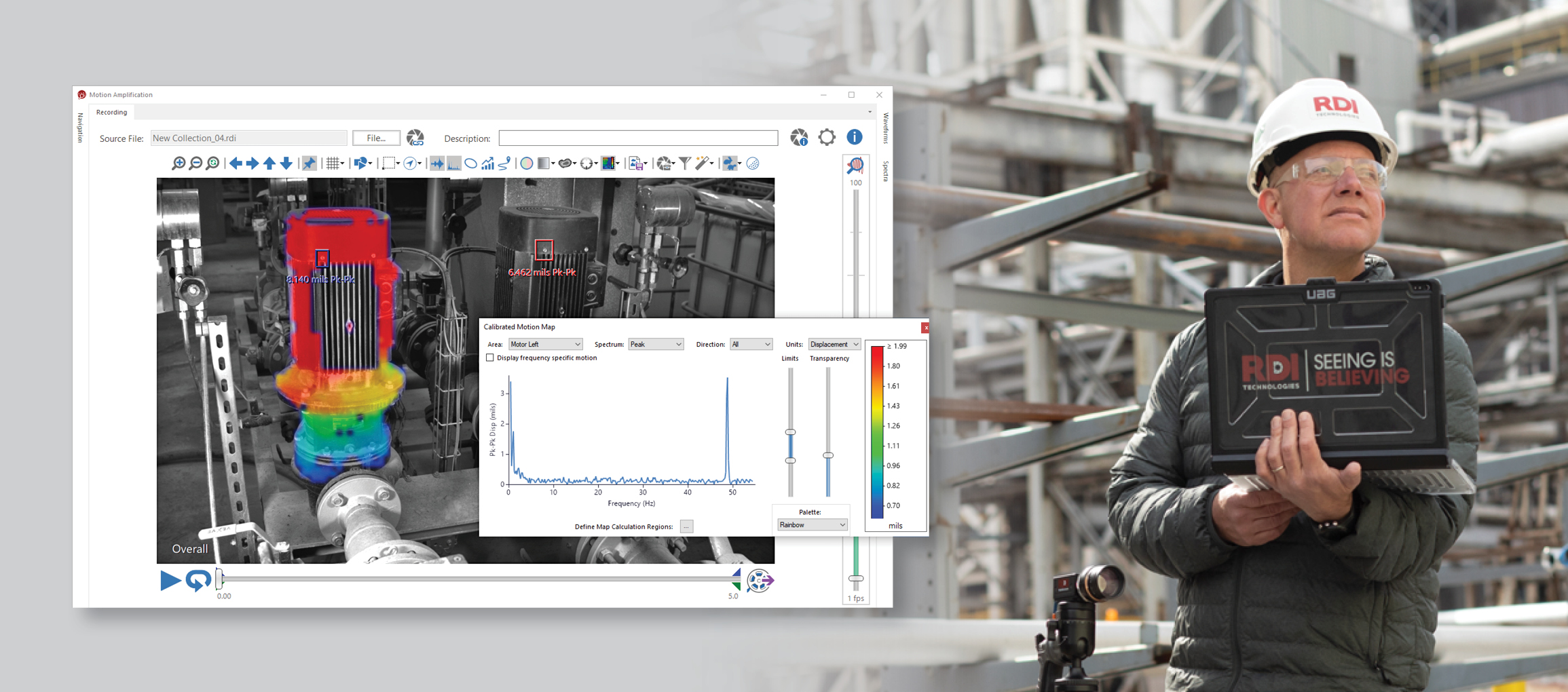Motion Amplification® technology has revolutionized the way we analyze and visualize motion data. With each software update, we apply user feedback and recommendations to enhance performance, improve usability, and implement cutting-edge features. The 3.9 software release takes this innovation to new heights, empowering users to streamline their workflows and unlock unprecedented insights. This release introduces a suite of powerful features and improvements designed to optimize user experience and accelerate data analysis. With efficiencies ranging from 25% reduction in map computation time to 96% savings in analysis time, 3.9 equips users with the resources they need to extract maximum value from their vibration monitoring data. 3.9 introduces a range of enhancements to boost analysis and streamline daily tasks. Notable improvements encompass data value display for ROIs, auto-refresh ROIs with live data and waveform updates, calibrated Motion Map videos, object highlighting for targeted analysis, object-specific Motion Maps, and a filter wizard for peak frequency analysis.
